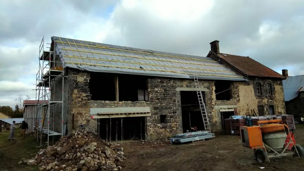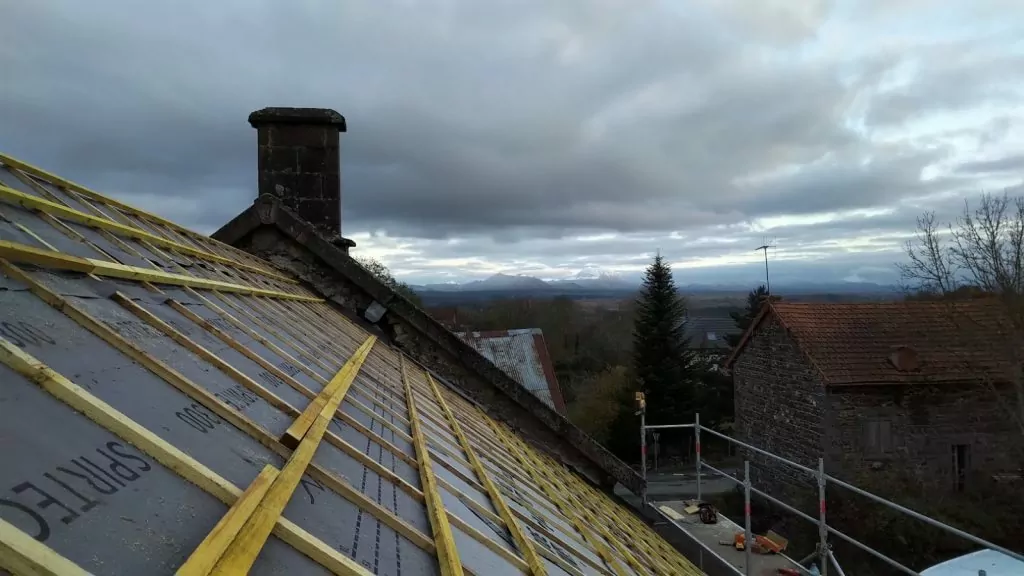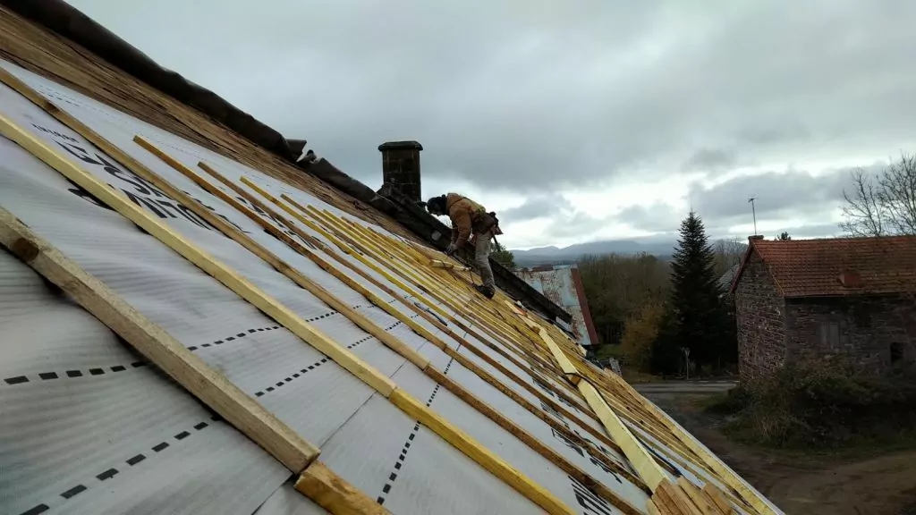 Dépose de la couverture, pose d’un écran de sous toiture, re-littelage, couverture et couloirs en zinc