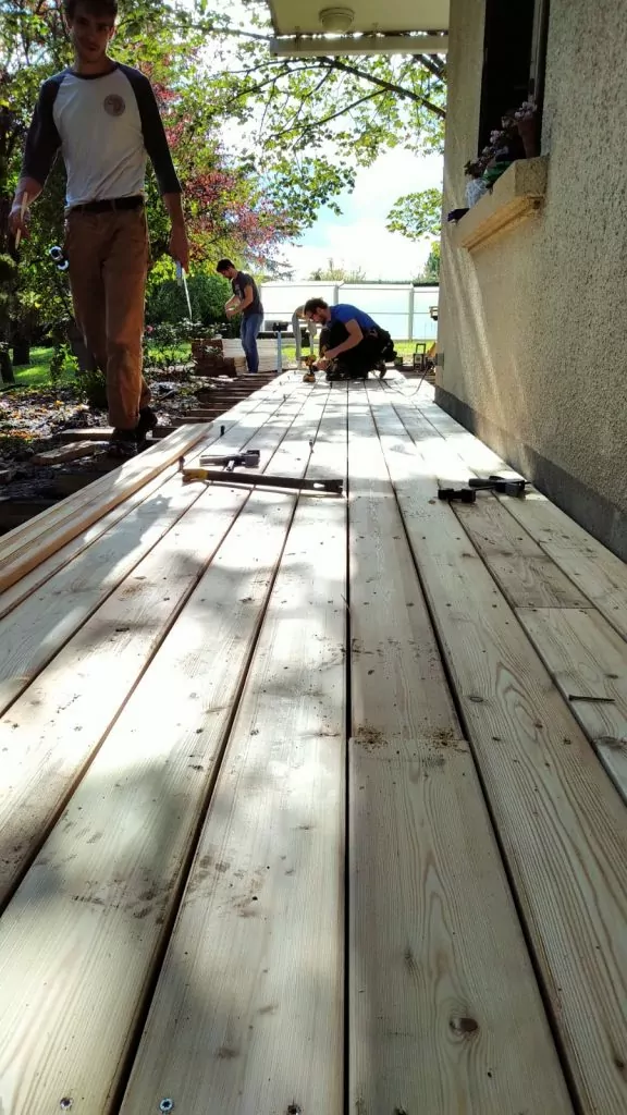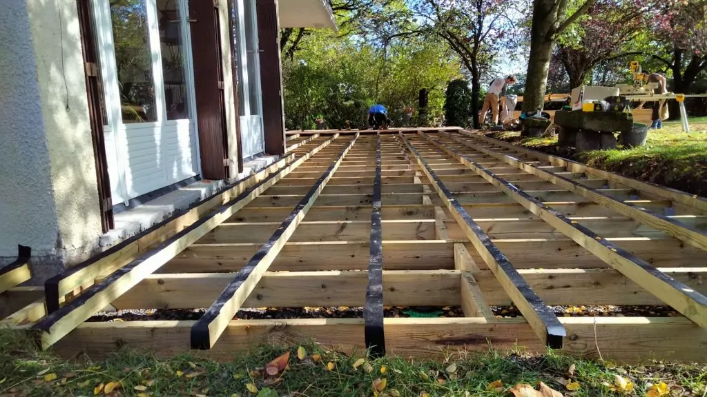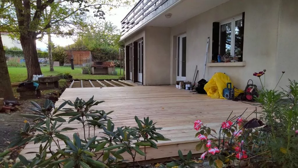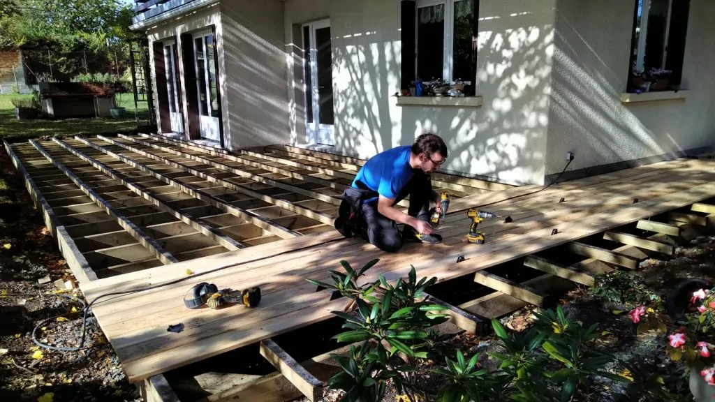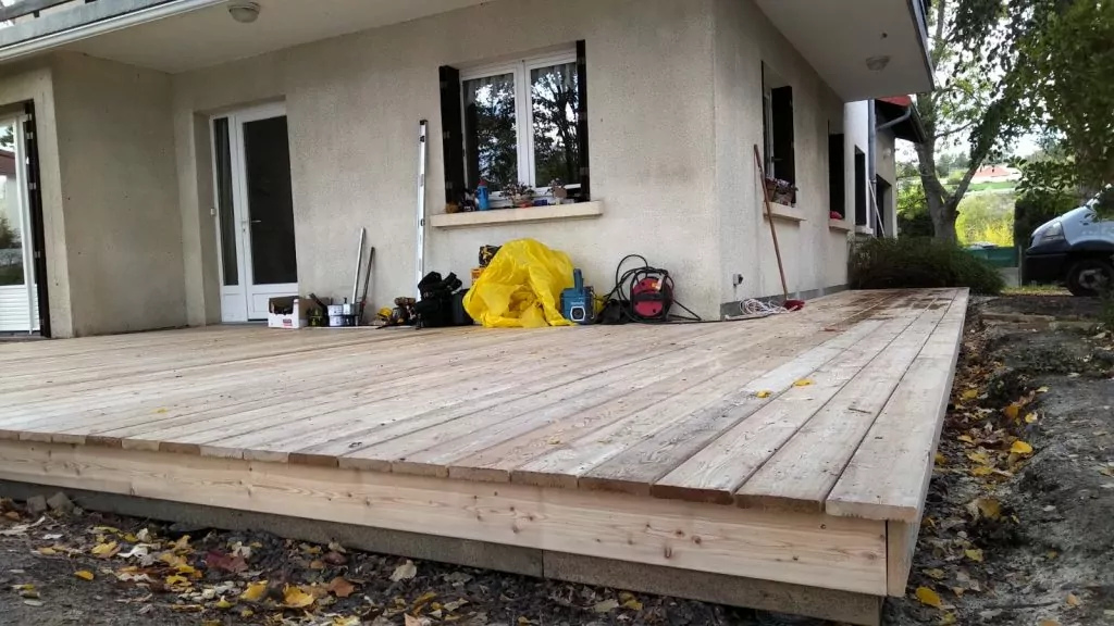 Réalisation d’une terrasse en classe 4 sur plots, lames en mélèze de pays