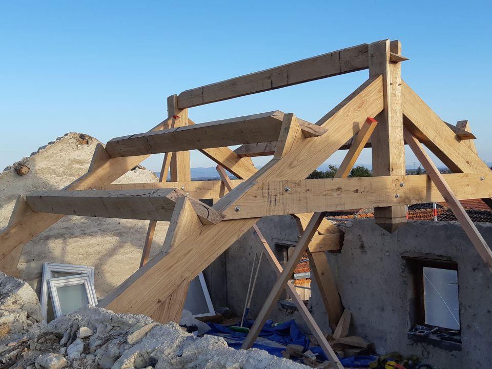 Avant l’hiver, nous avons entrepris la rénovation d’une toiture à Surat. Après avoir taillé les deux fermes sur